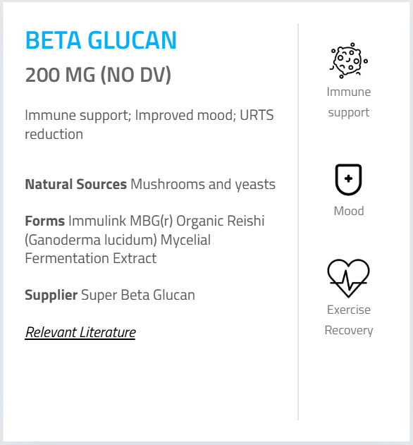 - Immulink MBG® Organic Reishi Extract (Ganoderma lucidum) (Min. 70% 1,3/1,6 Beta-D Glucan) – 200 mg