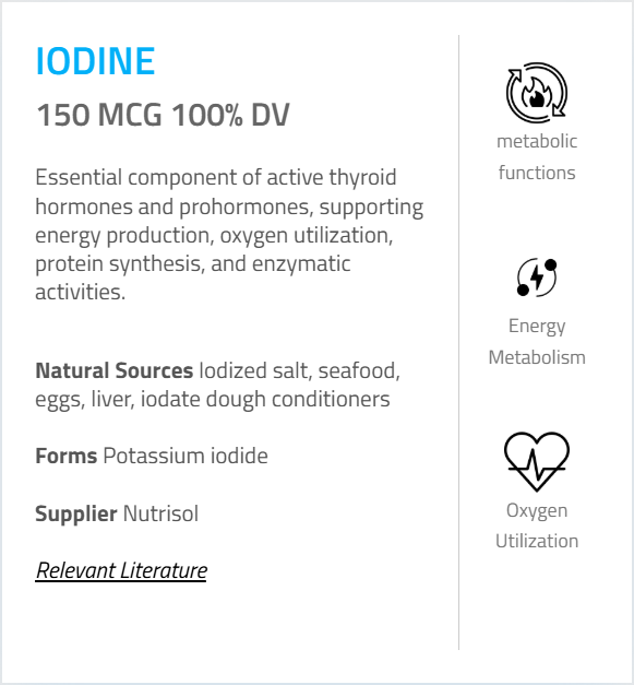 - Iodine (as Potassium Iodide) – 150 mcg (100%)