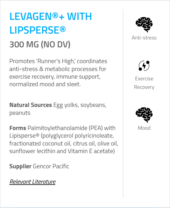 - Levagen®+ (Palmitoylethanolamide with LipiSperse®) – 300 mg