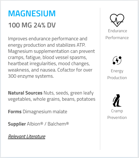- Magnesium (as Dimagnesium Malate) – 100 mg (24%)