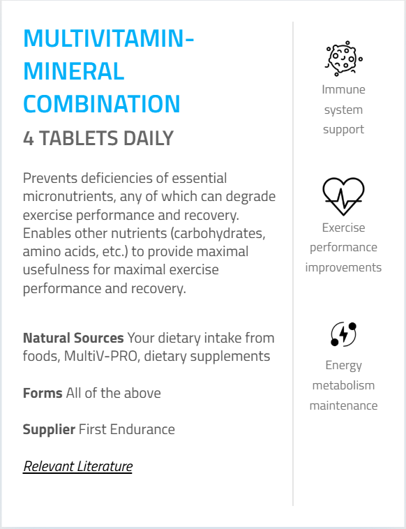 Endurance athletes need more of these micronutrients to ensure sufficient production of red blood cells and sustain endurance performance and optimal recovery, and MultiV-PRO is the highest convenient source of them.