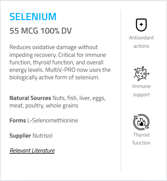 - Selenium (as L-Selenomethionine) – 55 mcg -(100%)