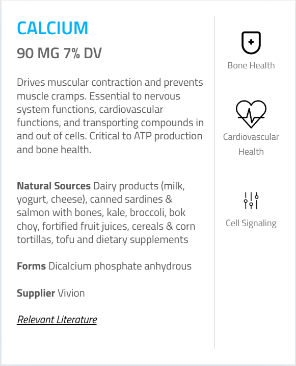 - Calcium (as Dicalcium Phosphate) – 90 mg - (7%)
