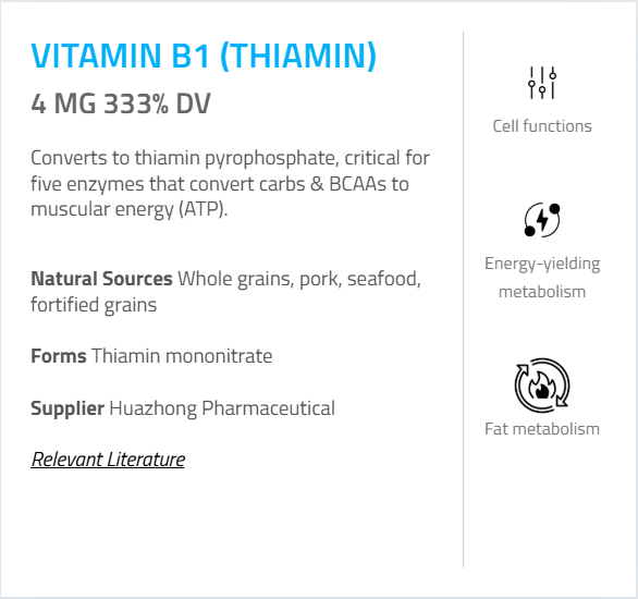 - Vitamin B1 (as Thiamin Mononitrate) – 4 mg - (330%)